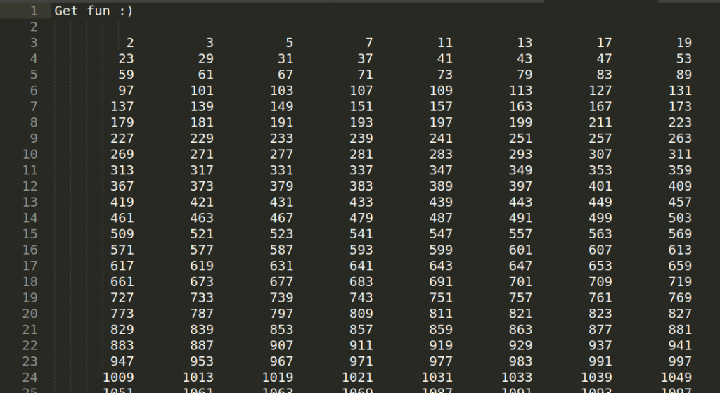 The numbers in the text file appeared to be prime numbers and my next thought was to check if there are any non-primes in the file.