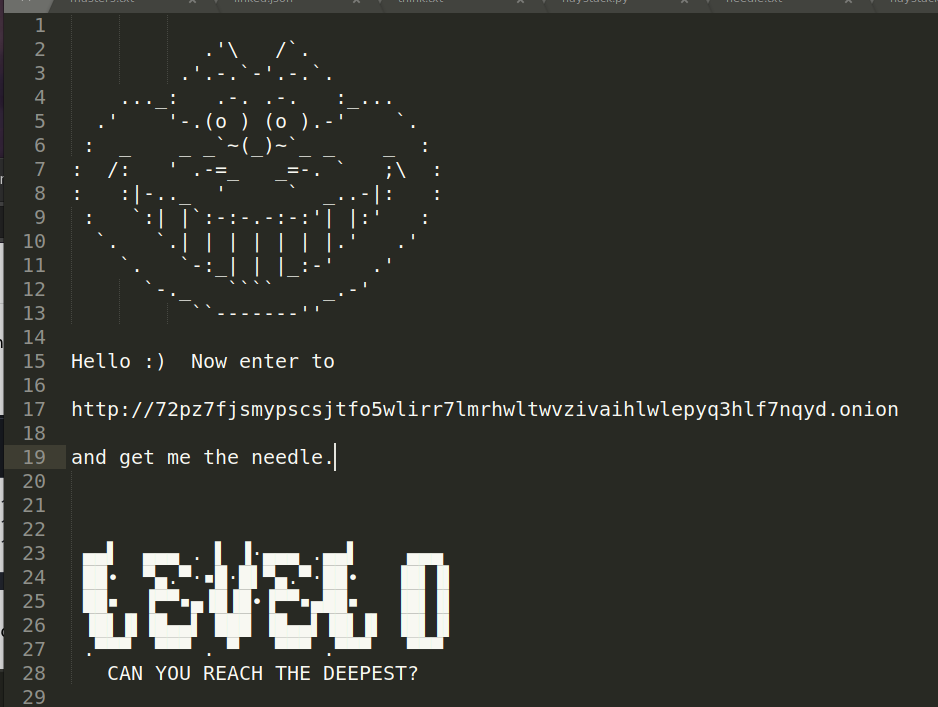 Binary conversion revealed an URL that contained a text file called ‘haystack.txt’.